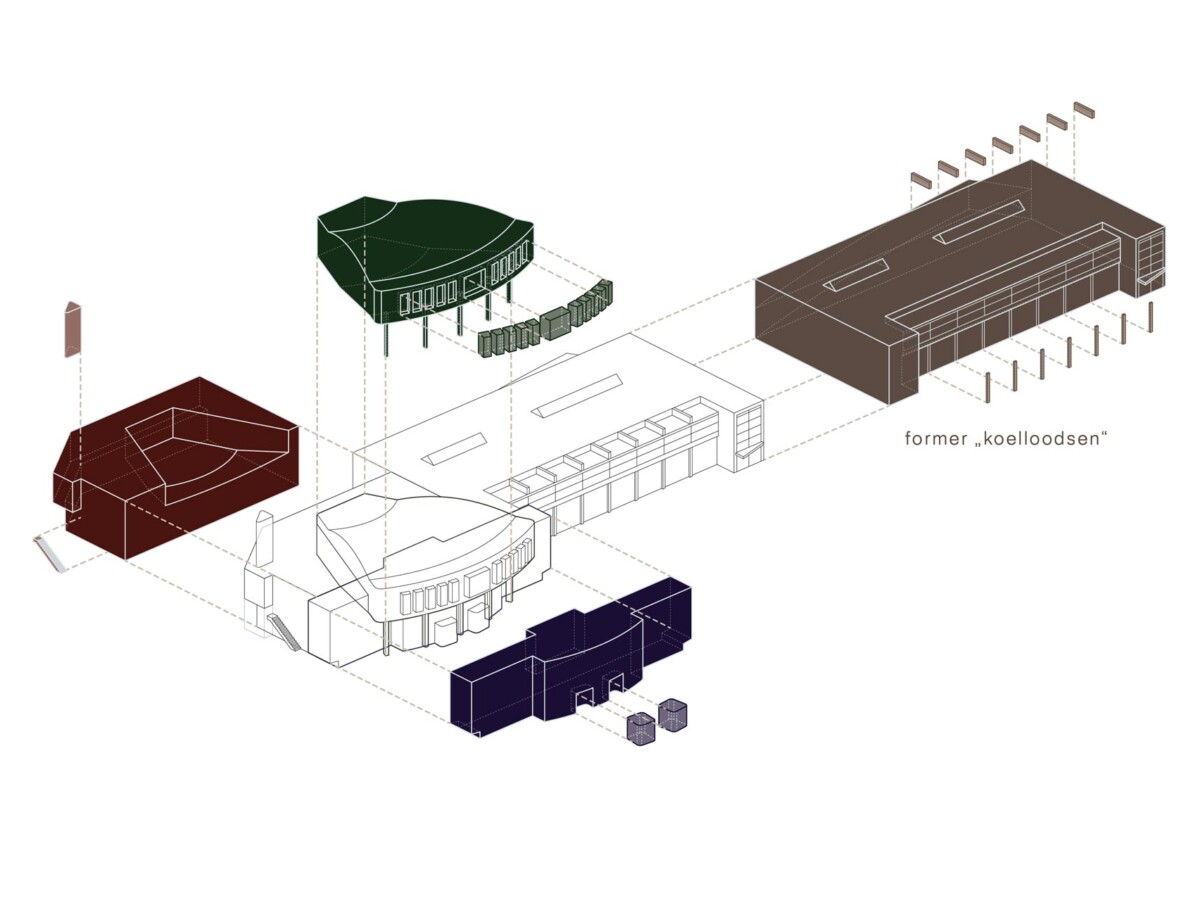 Our approach departs from a close reading of Maaskant’s architectural language: the interplay of open and closed volumes, robust materiality and a clear structural logic. The former koelloodsen (cold storage warehouses) — deep, introverted spaces with a strong industrial character — are reimagined as light-filled work environments while preserving their original spatial qualities. The challenge was to introduce daylight and openness without disrupting the rhythm and composition of the historic façade.