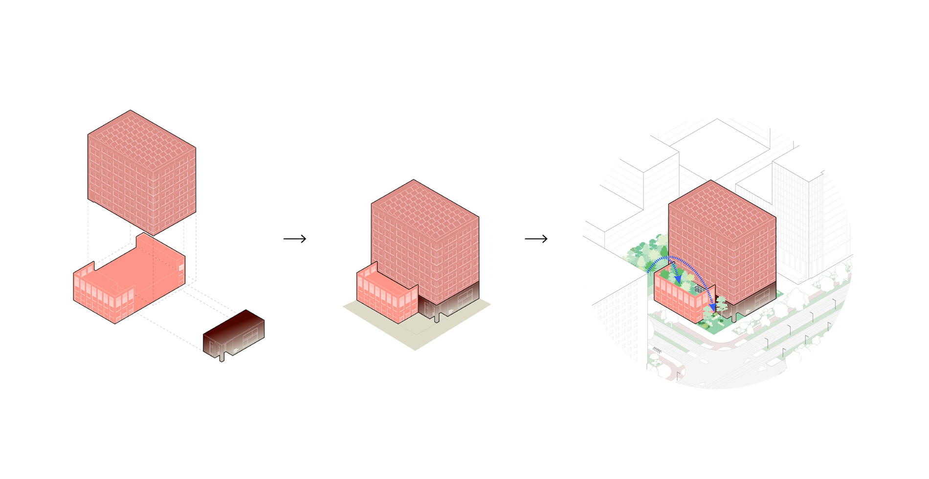 Our primary goal was to give back space to the public realm, offering a green and relaxed atmosphere along the Boelelaan. To achieve this, we departed from the prevailing design of a singular, massive block. Instead, we conceived two intersecting volumes of varying sizes. They form a cross marked by inverted corners on all sides. These corners are strategically designed to give a sense of openness and offer valuable extra space to the public domain. The corner facing the Boelelaan is particularly noteworthy: situated on the main axis of the Zuidas, it offers a pleasantly sized urban square for pause and conversation. Our chosen design approach addresses the urban challenges, enriches the urban environment and encourages community engagement in the users.